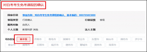 (二)在网站首页的搜索框左侧点击“全部”,从“分类”中选择“政务服务”,在文本框中输入“对自考考生免考课程的确认”,点击“搜索”后,从搜索结果中找到如下页面。